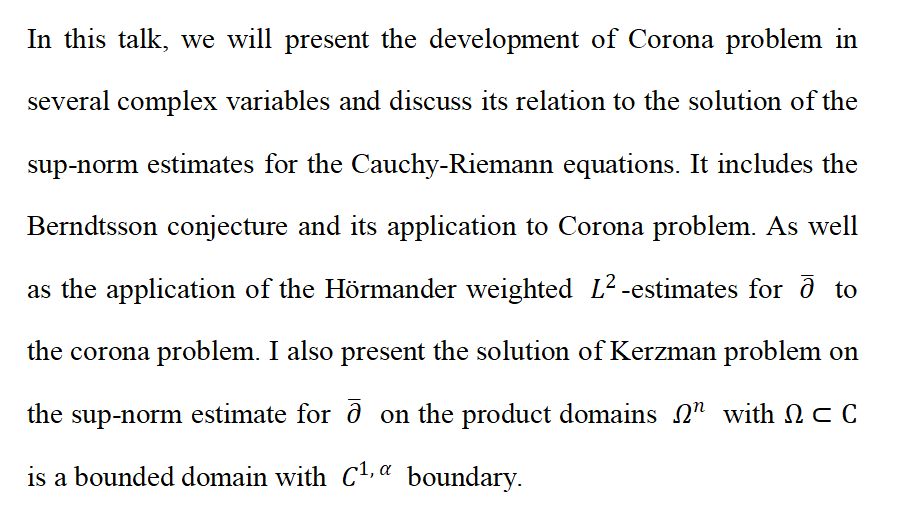【学术报告】Corona Problems and Sup-norm Estimates for dbar